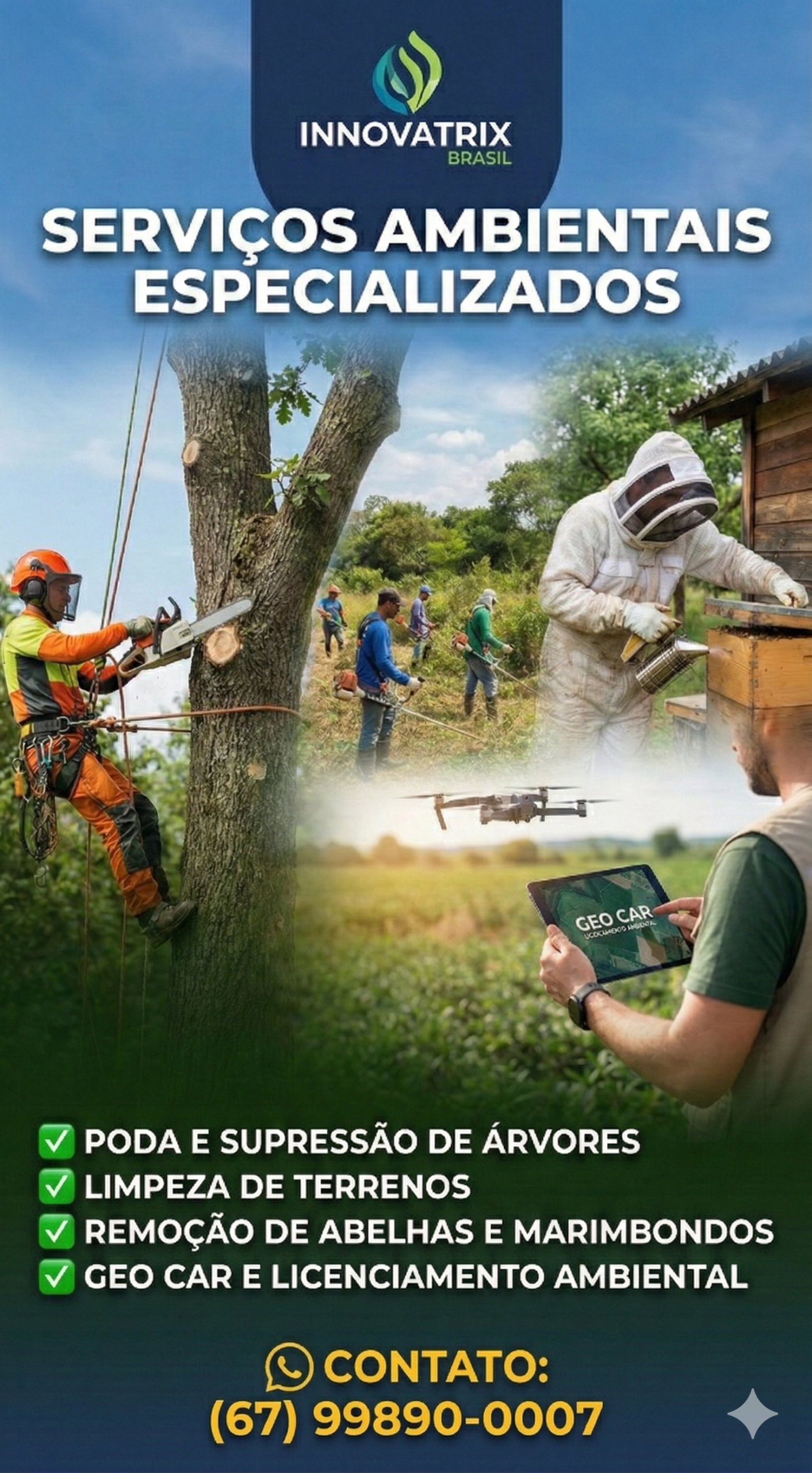 Optar pela Innovatrix Brasil é garantir a tranquilidade de um serviço realizado com excelência e segurança. Nossa equipe é composta por especialistas que asseguram a conformidade legal e a proteção ambiental em cada projeto.